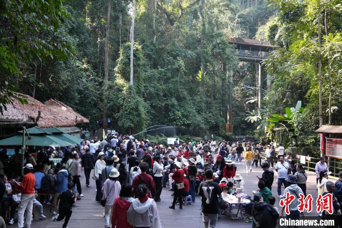 圖為游客游覽西雙版納望天樹(shù)景區(qū)?!⊥鞓?shù)景區(qū) 供圖