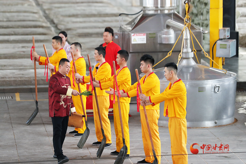 開釀儀式盡顯古樸,釀酒傳承人身著吉服,誦讀酒經(jīng)與祖訓:“德不立者不釀,心不誠者不釀……”并撒糠祈福,敬謝酒祖,隨著開釀聲起,酒匠們有條不紊開動,一锨一鏟,一甑一耙,配合默契,仿佛時光倒流至千年前。