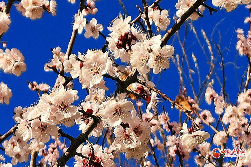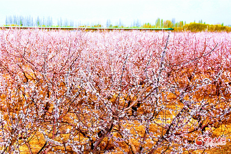 隴拍客丨臨澤流沙河:杏花盛景映雪山
