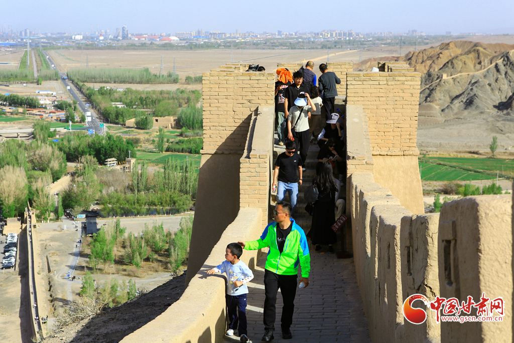 “五一”假期,甘肅省嘉峪關(guān)懸壁長城旅游景區(qū)迎來了客流高峰,景區(qū)內(nèi)游人如織,熱鬧非凡。來自五湖四海的游客們紛紛慕名而來,踏上這段陡峭險峻的懸壁長城,親身體驗其獨特的雄壯偉岸。他們站在城墻上,極目遠(yuǎn)眺,盡情領(lǐng)略著古長城所獨有的壯麗自然景觀與深厚歷史底蘊(yùn)。