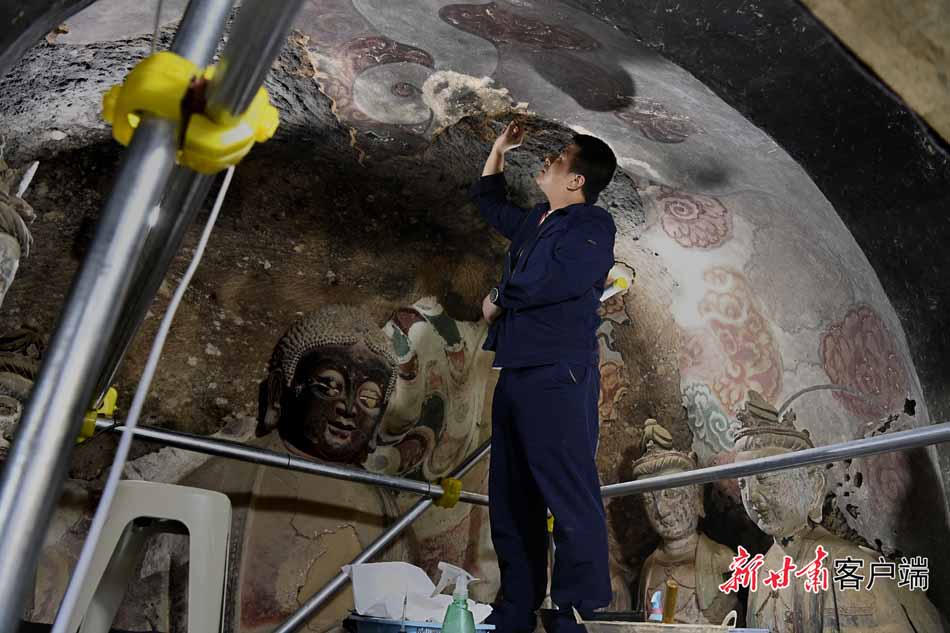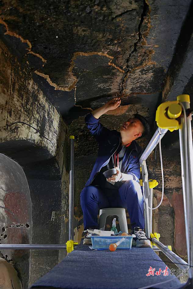 石窟外的時間流過千年,加之地處多雨林區(qū),文物保護(hù)變得極為不易,塑像和壁畫容易出現(xiàn)空鼓、開裂、脫色等病害。為保護(hù)好麥積山石窟,他們堅(jiān)守在山野之間,與寂靜洞窟為伴,不斷更新文物保護(hù)方式,守護(hù)著這些珍貴的歷史文化瑰寶。