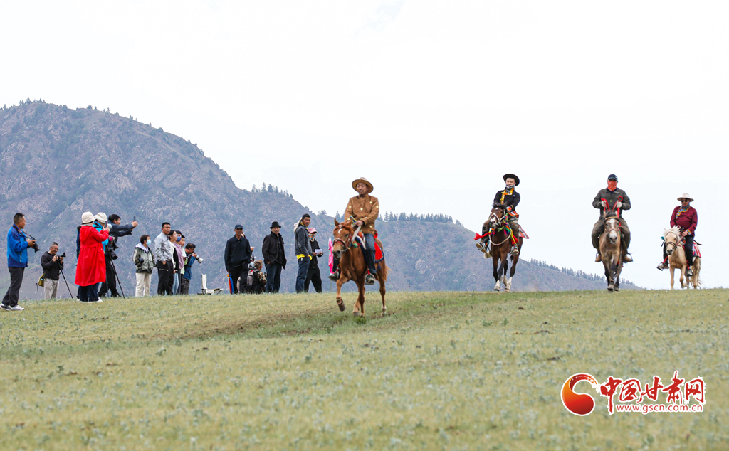 當(dāng)日,肅南裕固族自治縣“相約康樂草原 體驗(yàn)民族風(fēng)情”傳統(tǒng)文化展演活動(dòng)拉開帷幕,來自肅南縣3個(gè)鄉(xiāng)鎮(zhèn)22個(gè)村的160多名騎手,自發(fā)匯聚于此,展開大馬賽、小馬賽、圓口賽、對牙賽等精彩賽事,將草原的速度與激情演繹得淋漓盡致,吸引了上海、廣東、安徽、福建等地的萬名游客觀賞賽馬和領(lǐng)略雪山、森林、草原為一體的祁連山美麗景色。