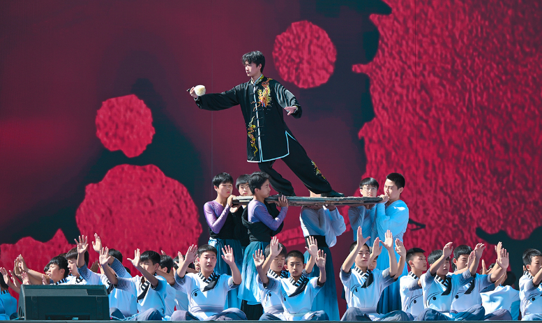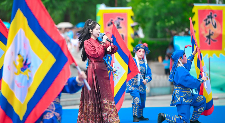 活動(dòng)伊始,開(kāi)場(chǎng)片《歡迎乘坐崆峒號(hào)》以“環(huán)西部火車(chē)游·崆峒號(hào)”平?jīng)雎糜螌?zhuān)列為靈感,通過(guò)跨時(shí)空對(duì)話(huà)串聯(lián)崆峒山古今脈絡(luò),拉開(kāi)活動(dòng)序幕。現(xiàn)場(chǎng),街舞與崆峒武術(shù)團(tuán)體合作的《武韻崆峒》展現(xiàn)武術(shù)與現(xiàn)代肢體藝術(shù)新生機(jī);笛子演奏與武術(shù)冠軍聯(lián)袂呈現(xiàn)的《崆音劍影》打造“可聽(tīng)的武術(shù)”沉浸式體驗(yàn);30人陣容的江蘇武協(xié)女子太極拳團(tuán)體演繹《鶴起崆峒》,詮釋武術(shù)新功用;國(guó)風(fēng)歌手與秦腔表演藝術(shù)家合作的《秦韻長(zhǎng)歌》,展現(xiàn)“武戲同源”的多元魅力。