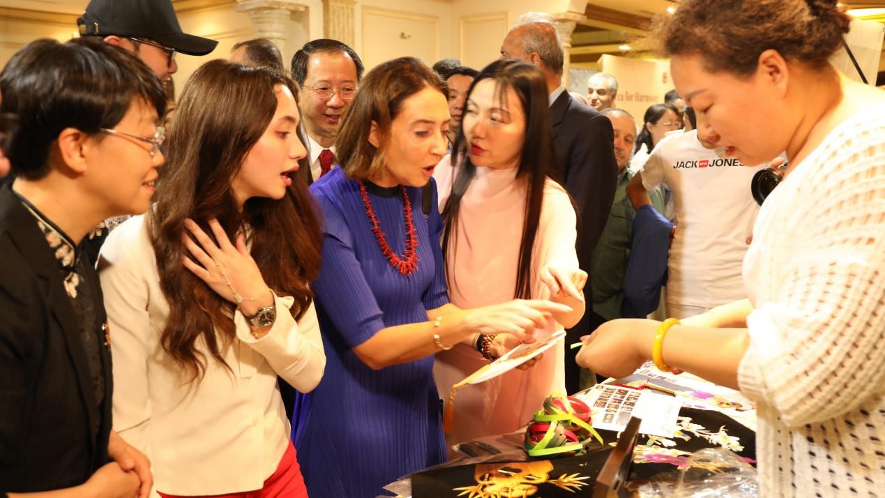 在今年5月18日“茶和天下——甘肅文旅推廣”安曼現(xiàn)場,唐彩萍現(xiàn)場制作的麥桿畫以獨(dú)特魅力驚艷全場,約旦王妃和加莉拉公主被其精湛的工藝深深吸引,親自上手體驗后豎起大拇指稱她是“奇人”。今年6月在“根與魂——甘肅省非遺澳門展演會”上,唐彩萍制作的麥桿畫《和平鴿》《中國龍》贏得與會人士的高度贊賞,澳門特別行政區(qū)政府文化局局長梁惠敏稱贊其“不同凡響,值得傳承發(fā)揚(yáng)”,并當(dāng)場邀請?zhí)撇势紴榘拈T小朋友傳授麥桿畫的制作方法。