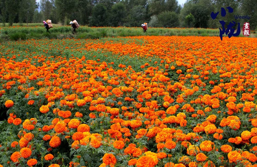金黃的萬壽菊低垂著頭,仿佛是在向大地母親致謝,感謝她給予的滋養(yǎng)與庇護。農人們穿梭其間,臉上洋溢著滿足與幸福的笑容,他們的汗水在這一刻得到了豐厚的回報。