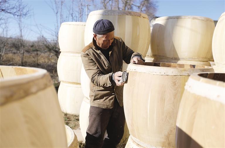 冬日農(nóng)閑時(shí)節(jié),在甘肅省定西市安定區(qū)鳳翔鎮(zhèn)北廿鋪村,牛皮鼓手工制作藝人利用晴好天氣趕制訂單牛皮鼓,供應(yīng)市場(chǎng)。該村每年可制作各類牛皮鼓3000余面,牛皮鼓手工制作涵蓋選材、解板、刨制鼓腔、蒙皮、釘釘?shù)榷嗟拦ば颍俳?jīng)數(shù)天晾曬和反復(fù)調(diào)試才能最終制成。牛皮鼓是我國(guó)的傳統(tǒng)打擊樂(lè)器,在西北地區(qū)用于民間社火表演等活動(dòng)。