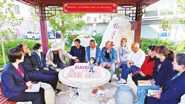 嘉峪關(guān)市雄關(guān)街道鐵南社區(qū)“鐵大叔議事站”開展協(xié)商議事活動(dòng)。